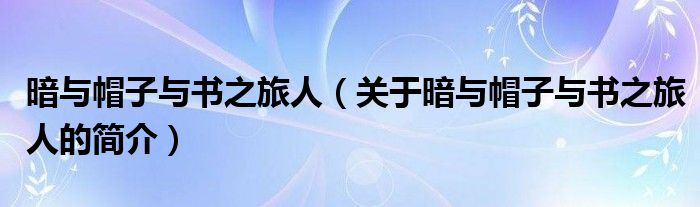 本文關于暗與帽子與書之旅人的簡介就講解完畢,希望對大家有所幫助。