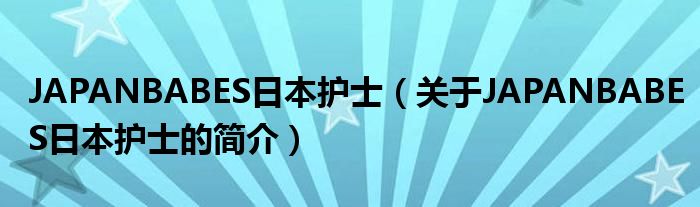 本文關(guān)于JAPANBABES日本護(hù)士的簡介就講解完畢,希望對大家有所幫助。