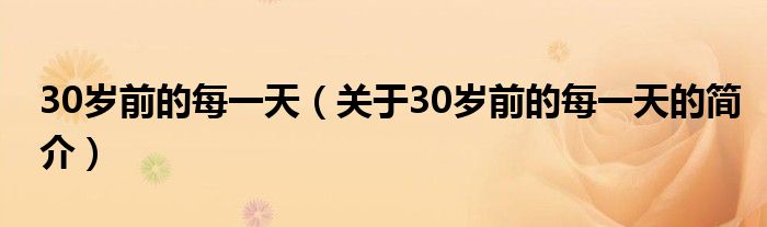 本文關(guān)于30歲前的每一天的簡(jiǎn)介就講解完畢,希望對(duì)大家有所幫助。