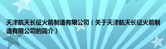 本文關(guān)于天津航天長(zhǎng)征火箭制造有限公司的簡(jiǎn)介就講解完畢,希望對(duì)大家有所幫助。