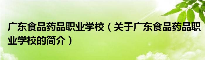 本文關(guān)于廣東食品藥品職業(yè)學(xué)校的簡介就講解完畢,希望對大家有所幫助。