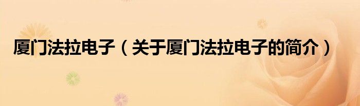 大家好,廈門法拉電子,關(guān)于廈門法拉電子的簡(jiǎn)介很多人還不知道,現(xiàn)在讓我們一起來看看吧!