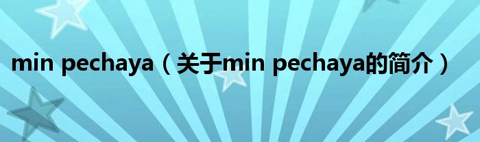 本文關于min pechaya的簡介就講解完畢,希望對大家有所幫助。