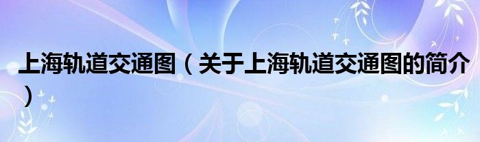 本文關于上海軌道交通圖的簡介就講解完畢,希望對大家有所幫助。