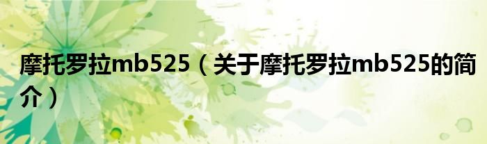 本文關(guān)于摩托羅拉mb525的簡介就講解完畢,希望對大家有所幫助。