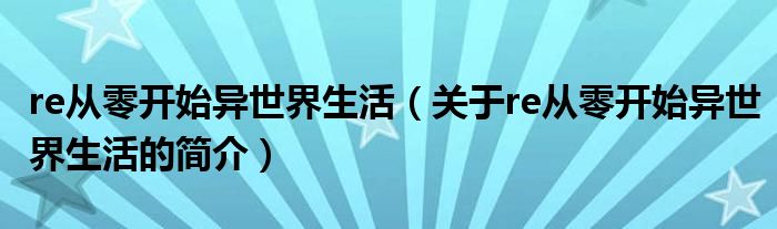 本文關于re從零開始異世界生活的簡介就講解完畢,希望對大家有所幫助。