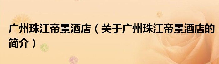 本文關于廣州珠江帝景酒店的簡介就講解完畢,希望對大家有所幫助。