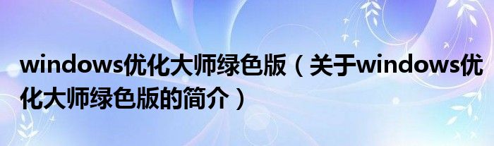 大家好,windows優(yōu)化大師綠色版,關(guān)于windows優(yōu)化大師綠色版的簡介很多人還不知道,現(xiàn)在讓我們一起來看看吧!