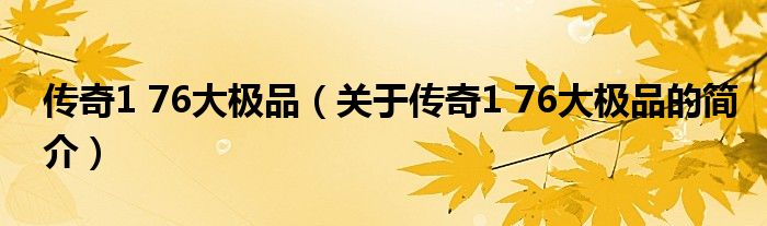 本文關于傳奇1 76大極品的簡介就講解完畢,希望對大家有所幫助。