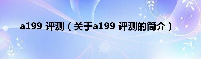 本文關(guān)于a199 評(píng)測(cè)的簡(jiǎn)介就講解完畢,希望對(duì)大家有所幫助。