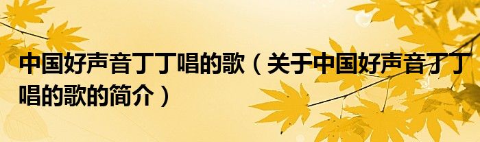 本文關于中國好聲音丁丁唱的歌的簡介就講解完畢,希望對大家有所幫助。