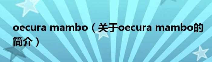 大家好,oecura mambo,關于oecura mambo的簡介很多人還不知道,現在讓我們一起來看看吧!