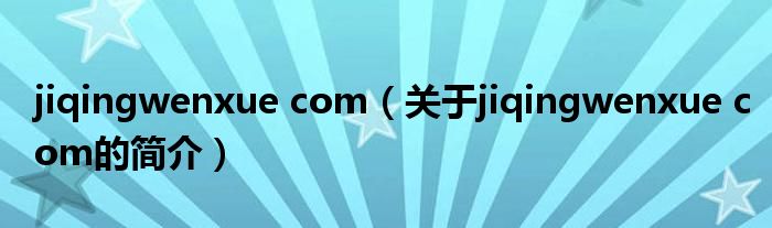 本文關(guān)于jiqingwenxue com的簡介就講解完畢,希望對大家有所幫助。