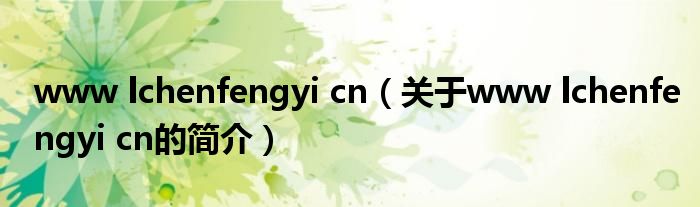 本文關(guān)于www lchenfengyi cn的簡(jiǎn)介就講解完畢,希望對(duì)大家有所幫助。