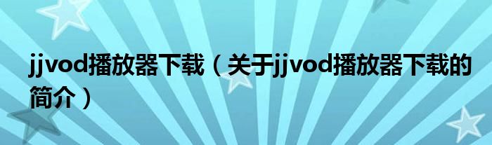 本文關于jjvod播放器下載的簡介就講解完畢,希望對大家有所幫助。