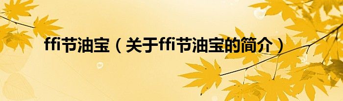 本文關于ffi節油寶的簡介就講解完畢,希望對大家有所幫助。