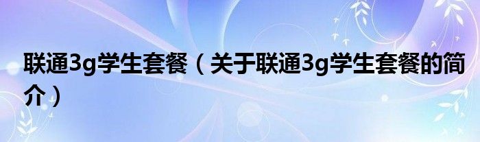 本文關于聯通3g學生套餐的簡介就講解完畢,希望對大家有所幫助。