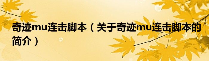 本文關于奇跡mu連擊腳本的簡介就講解完畢,希望對大家有所幫助。