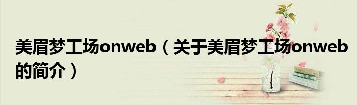 大家好,美眉夢工場onweb,關(guān)于美眉夢工場onweb的簡介很多人還不知道,現(xiàn)在讓我們一起來看看吧!