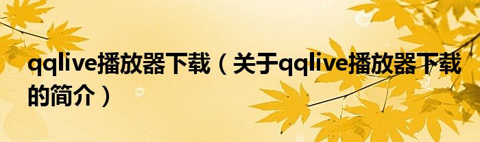 本文關于qqlive播放器下載的簡介就講解完畢,希望對大家有所幫助。