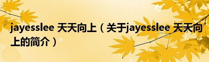 本文關(guān)于jayesslee 天天向上的簡介就講解完畢,希望對大家有所幫助。