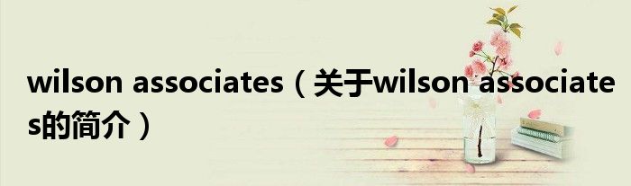 大家好,wilson associates,關(guān)于wilson associates的簡介很多人還不知道,現(xiàn)在讓我們一起來看看吧!