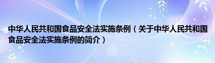 本文關于中華人民共和國食品安全法實施條例的簡介就講解完畢,希望對大家有所幫助。