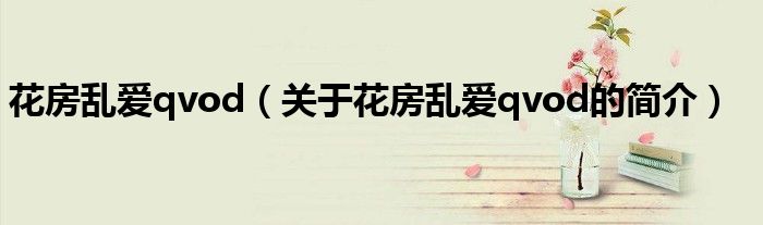 大家好,花房亂愛qvod,關于花房亂愛qvod的簡介很多人還不知道,現在讓我們一起來看看吧!