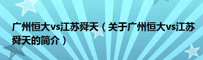 本文關于廣州恒大vs江蘇舜天的簡介就講解完畢,希望對大家有所幫助。