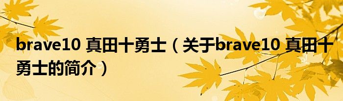 大家好,brave10 真田十勇士,關(guān)于brave10 真田十勇士的簡介很多人還不知道,現(xiàn)在讓我們一起來看看吧!