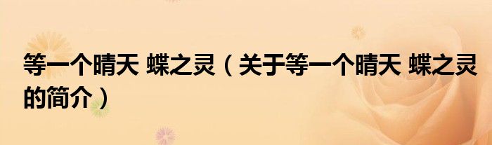 本文關(guān)于等一個(gè)晴天 蝶之靈的簡(jiǎn)介就講解完畢,希望對(duì)大家有所幫助。