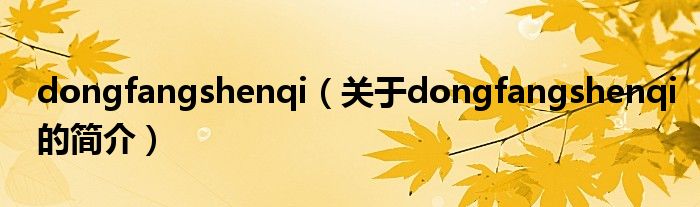 大家好,dongfangshenqi,關于dongfangshenqi的簡介很多人還不知道,現在讓我們一起來看看吧!