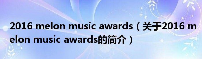 本文關于2016 melon music awards的簡介就講解完畢,希望對大家有所幫助。