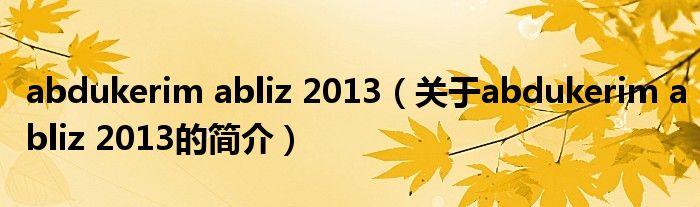 本文關(guān)于abdukerim abliz 2013的簡(jiǎn)介就講解完畢,希望對(duì)大家有所幫助。