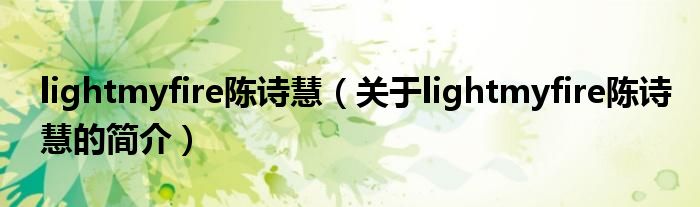 本文關于lightmyfire陳詩慧的簡介就講解完畢,希望對大家有所幫助。
