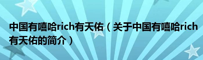 本文關于中國有嘻哈rich有天佑的簡介就講解完畢,希望對大家有所幫助。