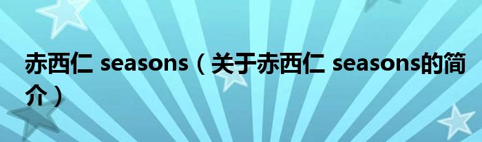 大家好,赤西仁 seasons,關于赤西仁 seasons的簡介很多人還不知道,現在讓我們一起來看看吧!