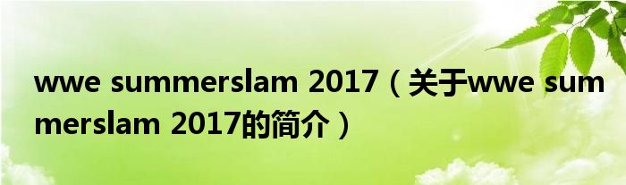大家好,wwe summerslam 2017,關(guān)于wwe summerslam 2017的簡(jiǎn)介很多人還不知道,現(xiàn)在讓我們一起來(lái)看看吧!
