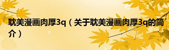大家好,耽美漫畫肉厚3q,關于耽美漫畫肉厚3q的簡介很多人還不知道,現在讓我們一起來看看吧!