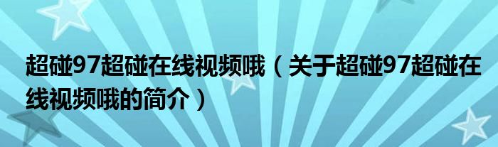 本文關(guān)于超碰97超碰在線視頻哦的簡介就講解完畢,希望對大家有所幫助。