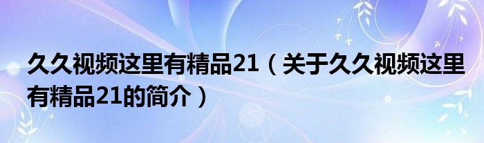 本文關于久久視頻這里有精品21的簡介就講解完畢,希望對大家有所幫助。