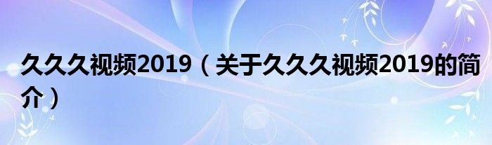本文關(guān)于久久久視頻2019的簡(jiǎn)介就講解完畢,希望對(duì)大家有所幫助。