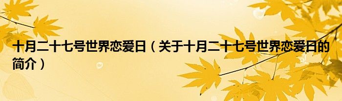 本文關于十月二十七號世界戀愛日的簡介就講解完畢,希望對大家有所幫助。