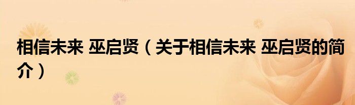 本文關(guān)于相信未來 巫啟賢的簡介就講解完畢,希望對(duì)大家有所幫助。
