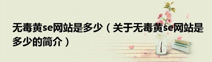 本文關于無毒黃se網站是多少的簡介就講解完畢,希望對大家有所幫助。