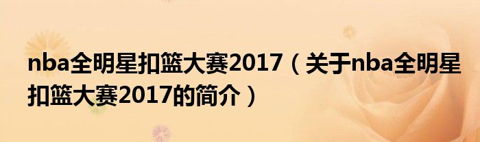本文關于nba全明星扣籃大賽2017的簡介就講解完畢,希望對大家有所幫助。