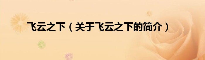本文關于飛云之下的簡介就講解完畢,希望對大家有所幫助。