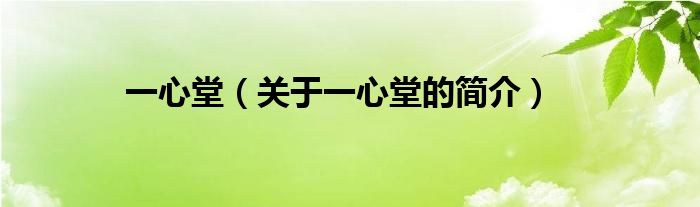 大家好,一心堂,關于一心堂的簡介很多人還不知道,現在讓我們一起來看看吧!