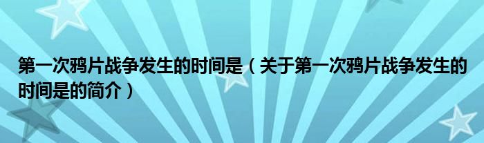 本文關于第一次鴉片戰爭發生的時間是的簡介就講解完畢,希望對大家有所幫助。