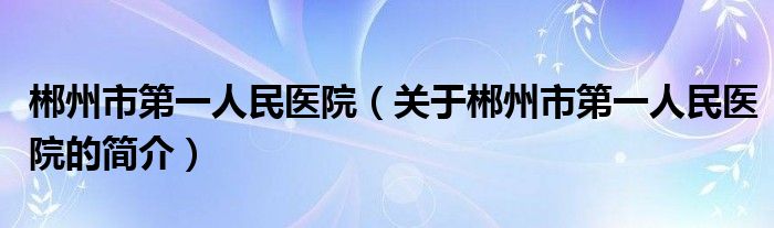本文關于郴州市第一人民醫院的簡介就講解完畢,希望對大家有所幫助。